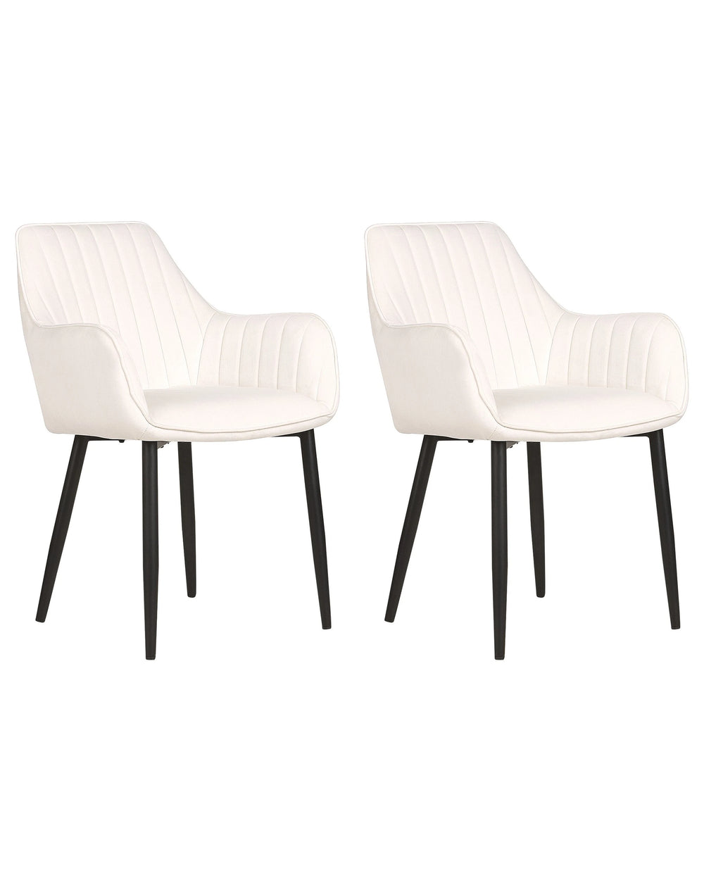 Set of 2 Dining Chairs Off-White Velvet Armrests Black Metal Legs Retro Glam Beliani