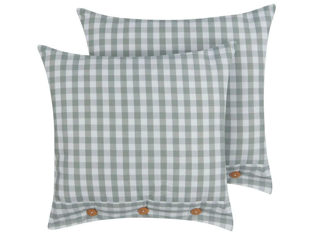Set of 2 Decorative Cushions Green and White Chequered Pattern 45 x 45 cm Buttons Modern Dcor Accessories Bedroom Living Room Beliani