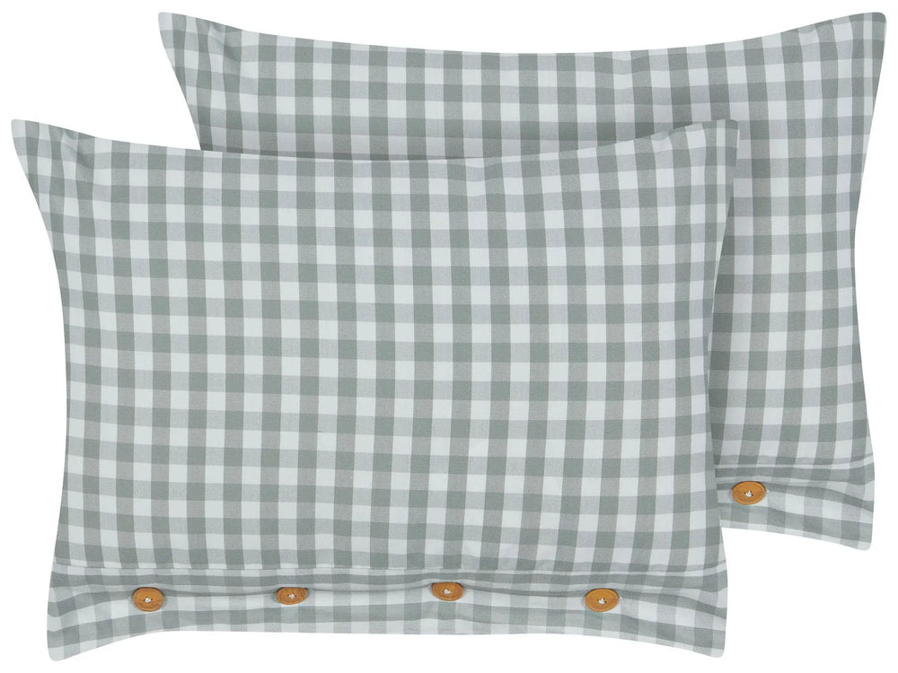 Set of 2 Decorative Cushions Green and White Chequered Pattern 40 x 60 cm Buttons Modern Dcor Accessories Bedroom Living Room Beliani