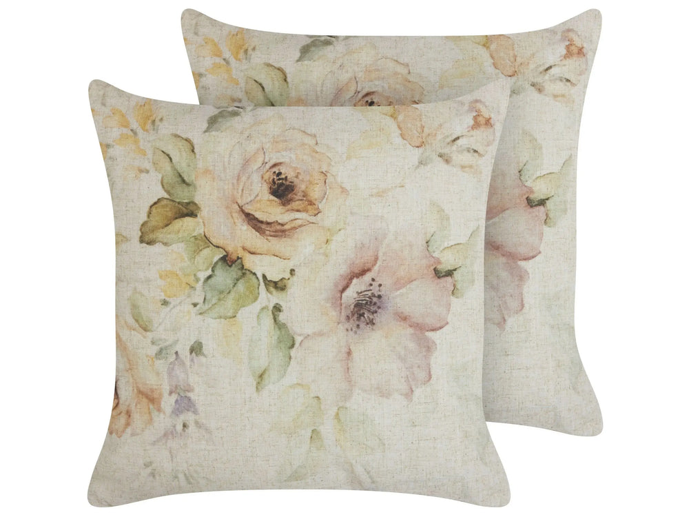 Set of 2 Decorative Cushions Beige Multicolour Floral Pattern 45 x 45 cm Vintage Boho Decor Accessories Beliani