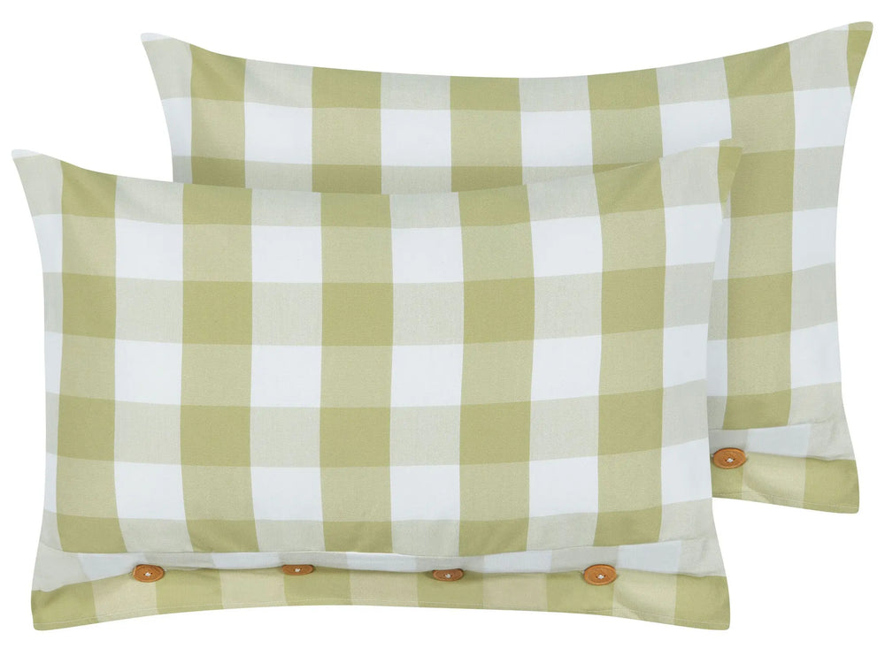 Set of 2 Scatter Cushions Green Fabric 40 x 60 cm Checked Pattern Cottage Style Textile Beliani