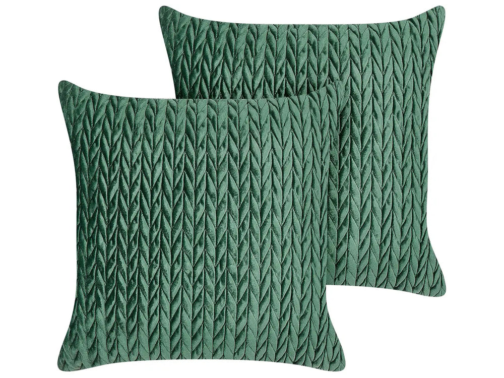 Set of 2 Scatter Cushions Green Polyester Fabric Quilted 45 x 45 cm Throw Pillow Beliani