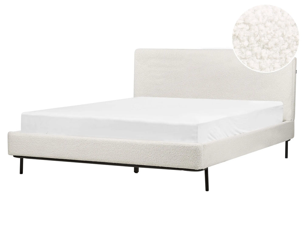 Slatted Bed Frame Off White Polyester Boucle Fabric Upholstered 5ft3 EU King Size Modern Design Beliani is backordered and will ship as soon as it is back in stock.