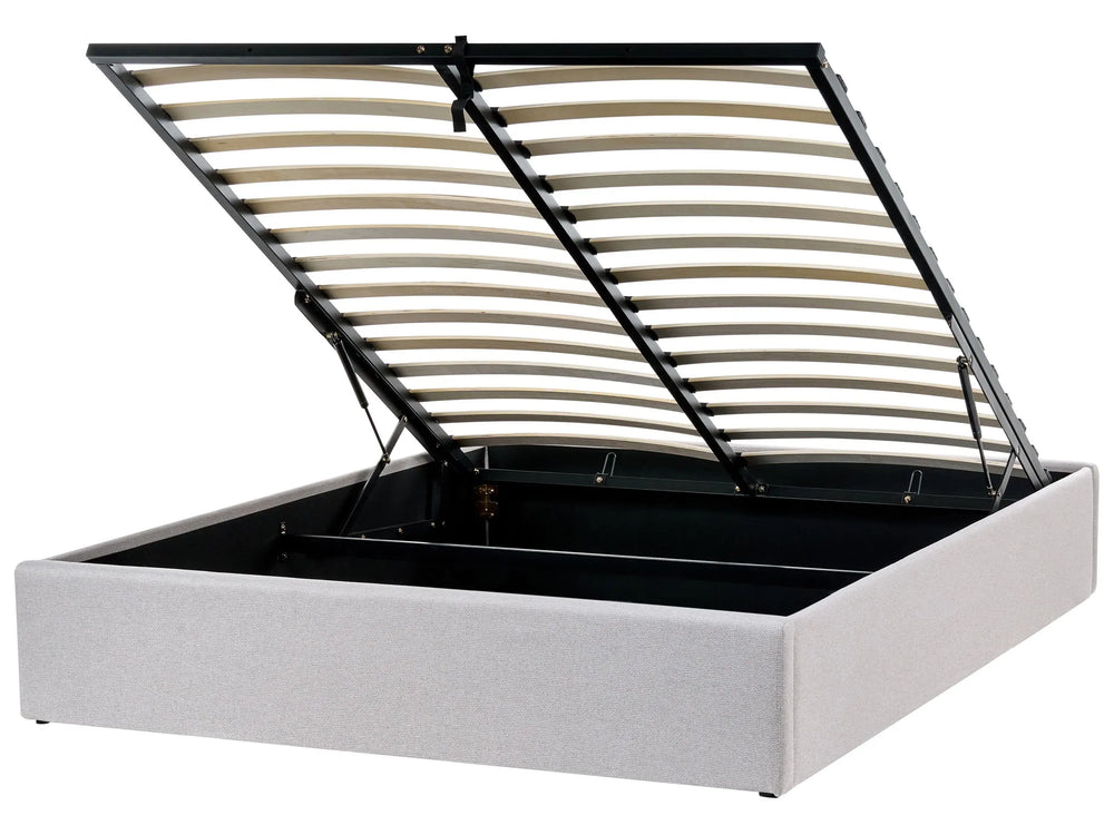 Slatted Bed Frame Light Grey Polyester Fabric Upholstered Ottoman Storage 5ft3 EU King Size Modern Design Beliani