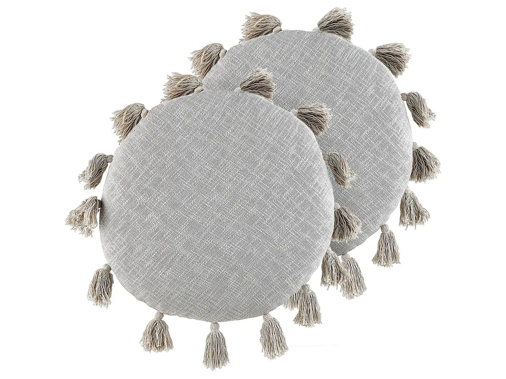 Set of 2 Decorative Cushions Grey Cotton 45 cm Round with Tassels Modern Boho Decor Accessories Beliani