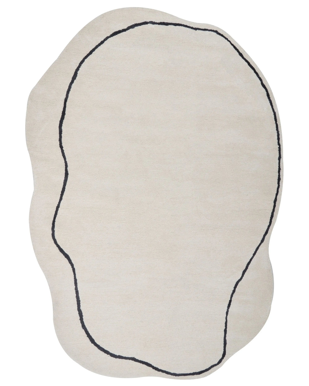 Make your interior stand out with this unique and handmade area rug. Tufted out of high-quality viscose and wool, the piece is soft and pleasant to touch, while also being quite durable and low-maintenance, so even without daily care it can adorn your living space for the years to come. Its irregular shape, combined with black, geometric pattern makes it truly unique and attention-drawing, while the beige shade allows you to match it with a variety of modern interior decor styles.
