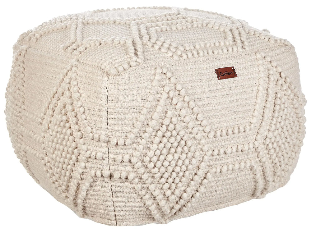Pouf Ottoman Footstool Beige Wool 60 x 60 x 40 cm Hand Woven Beads Filling Square Beliani
