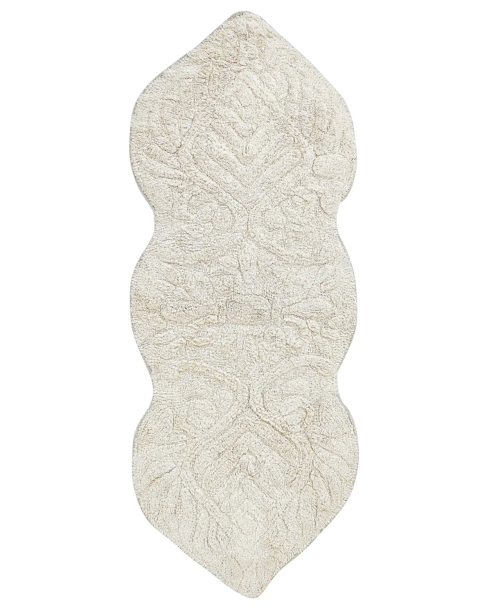 Bath Mat Beige Cotton 150 x 60 cm Irregular Shape Decorative Pattern Bath Rug Bathroom Accessories Modern Design Beliani