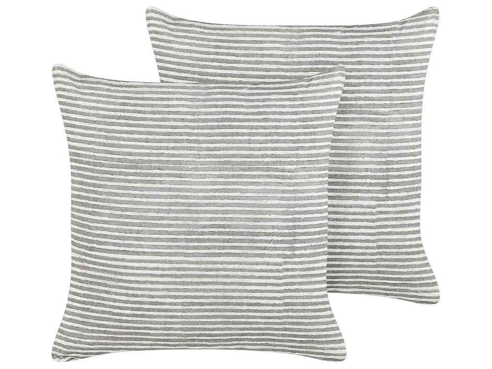 Set of 2 Decorative Cushions Grey and White Linen Cotton 50 x 50 cm Striped Pattern Decor Accessories Beliani