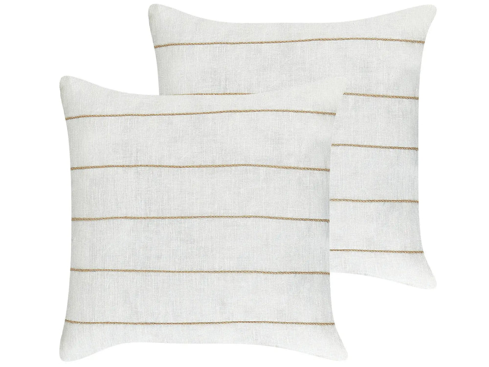Set of 2 Decorative Cushions White nad Beige Linen Cotton 50 x 50 cm Striped Pattern Decor Accessories Beliani