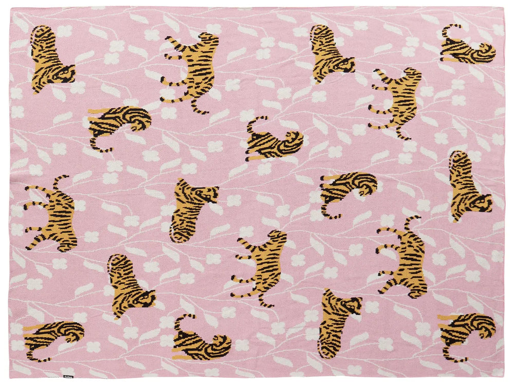 Kids Blanket Pink Cotton 130 x 180 cm Bed Throw Cosy Tiger Pattern Bedroom Kids' Room Modern Design Beliani