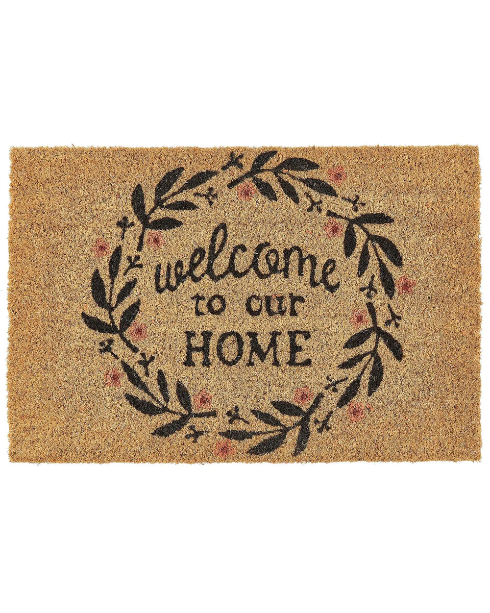 Doormat Natural Coir PVC Backing Anti-Slip 40 x 60 cm Caption Text Motif Modern Indoor Decoration Beliani