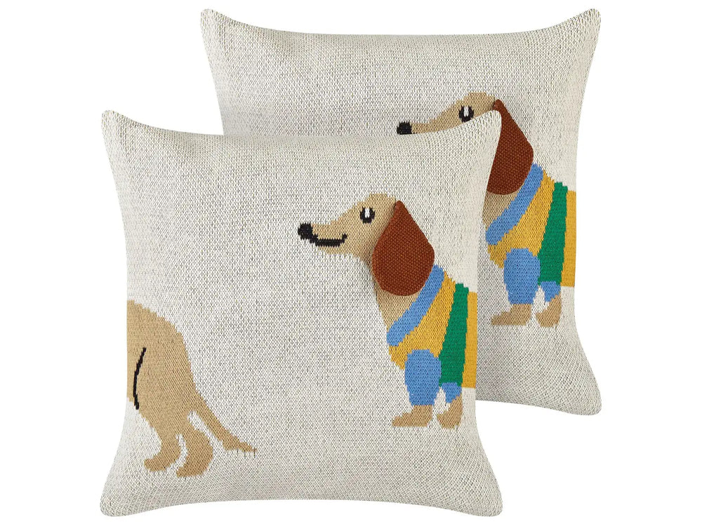 Set of 2 Kids Decorative Cushions Beige Cotton Covers 45 x 45 cm Dachshund Pattern Kid's Bedroom Accessory Beliani is backordered and will ship as soon as it is back in stock.