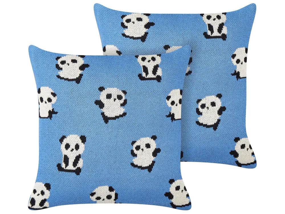 Set of 2 Kids Decorative Cushions Blue Cotton Covers 45 x 45 cm Pandas Pattern Kids Bedroom Accessory Beliani