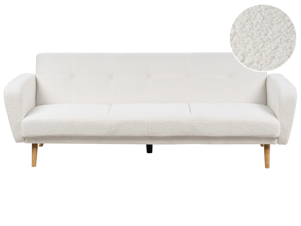 Sofa Bed White Boucle Fabric Upholstered 3 Seater Convertible Wooden Legs Modern Minimalistic Living Room Beliani