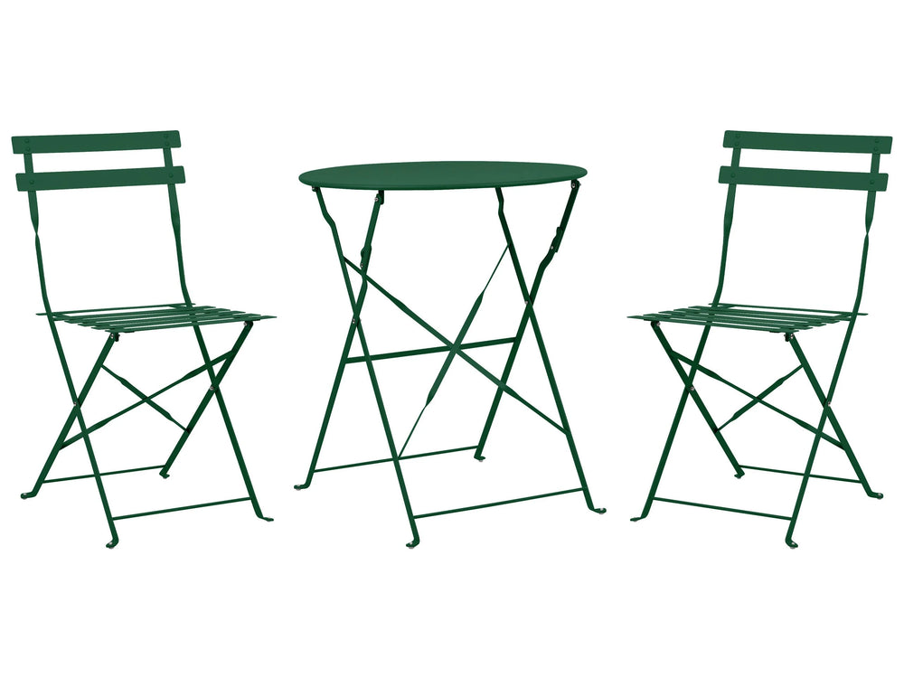 3 Piece Bistro Set Dark Green Metal Folding Slatted Seat Back Outdoor Beliani