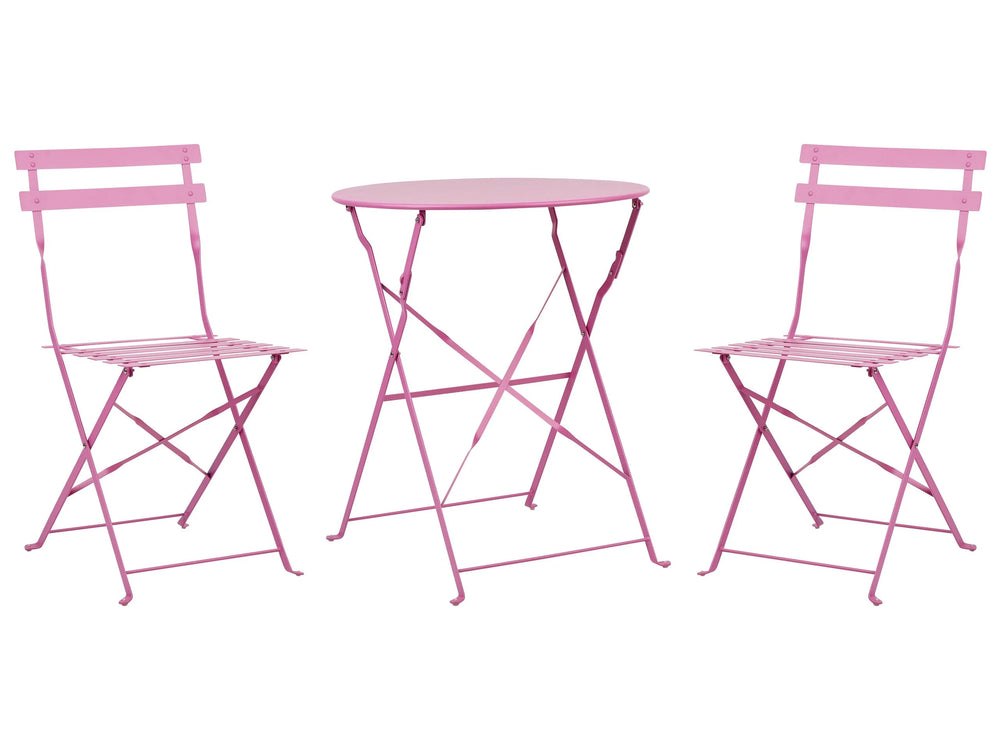 3 Piece Bistro Set Pink Metal Folding Slatted Seat Back Outdoor Beliani