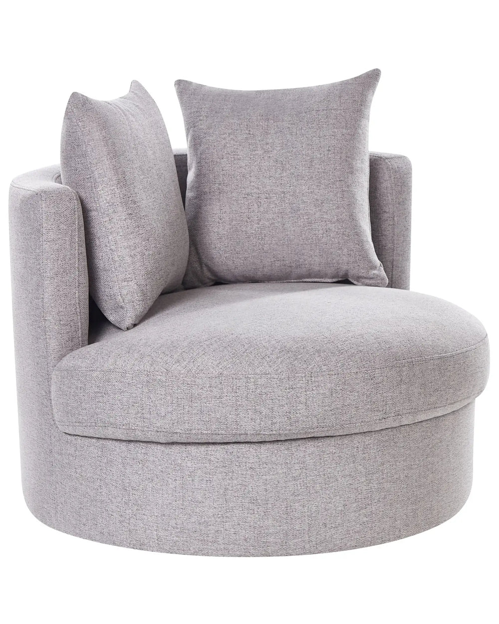 Armchair Grey Polyester Swivel Iron Base Two Cushions Removable Covers Round Back Modern Glam Style Living Room Beliani