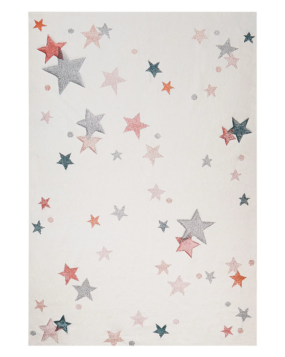 Area Rug White and Multicolour Cotton Stars Pattern 140 x 200 cm Low Pile for Children Playroom Beliani