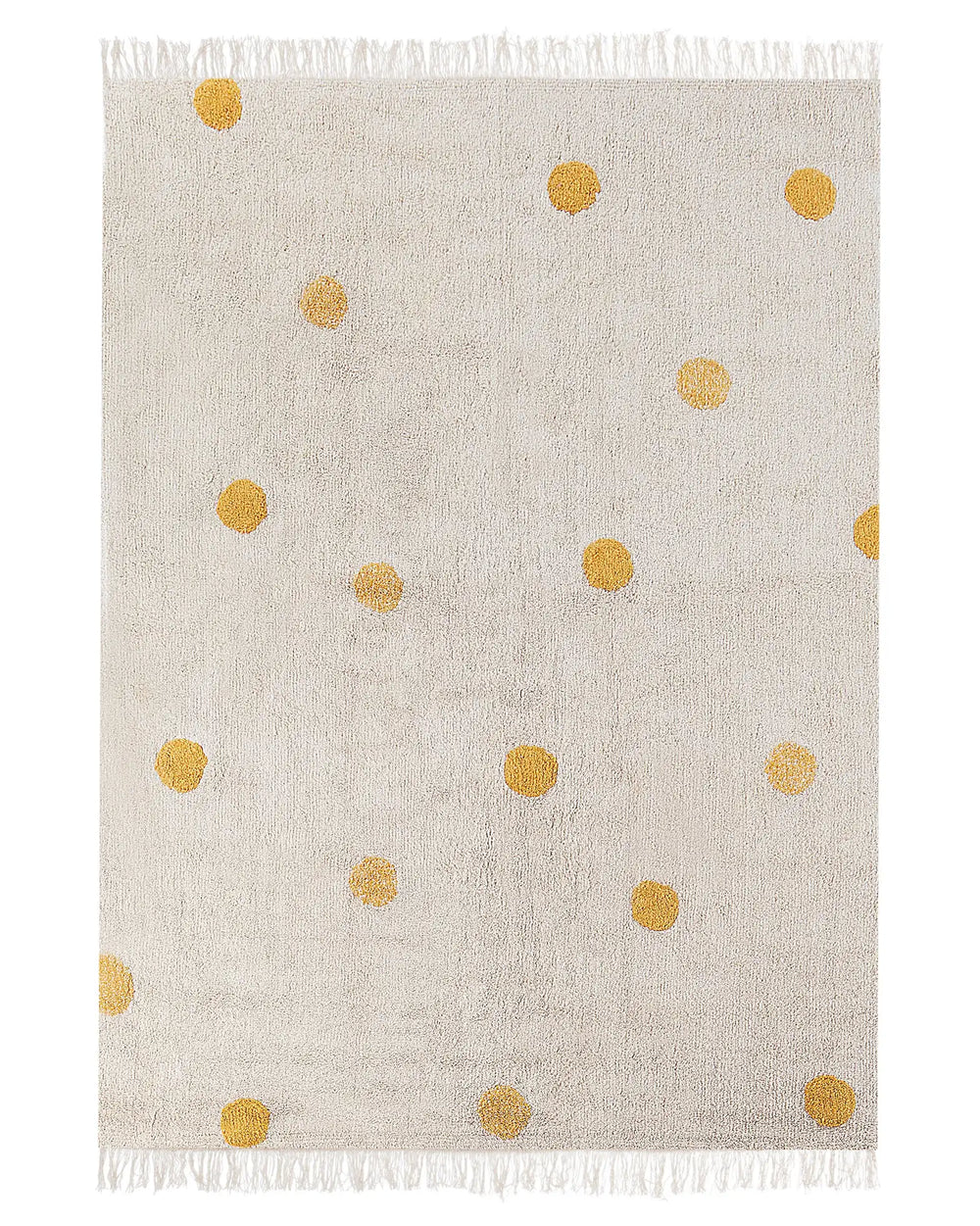 Area Rug Beige and Yellow Cotton Dots Pattern 140 x 200 cm Low Pile for Children Playroom Beliani