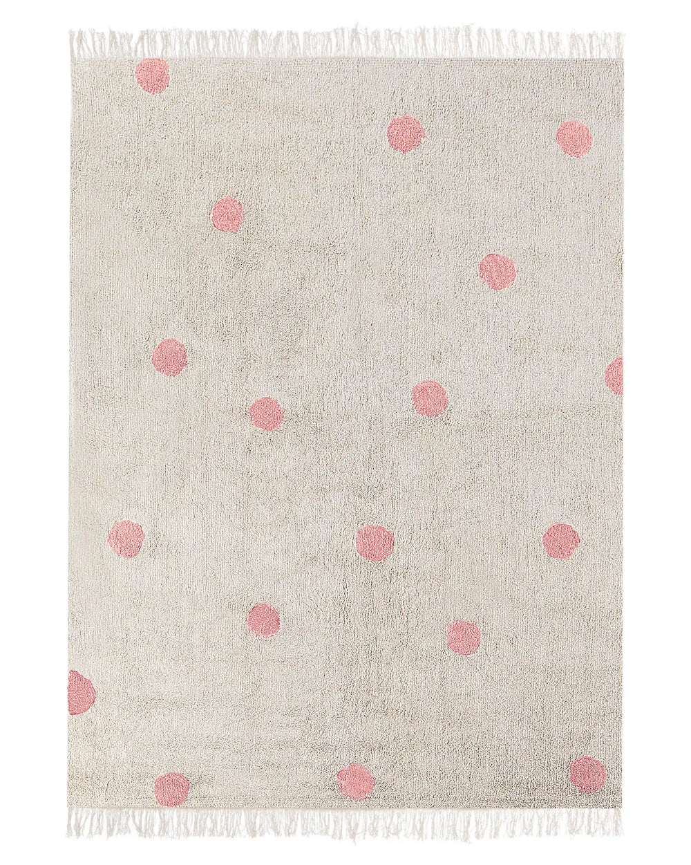 Area Rug Beige and Pink Cotton Dots Pattern 140 x 200 cm Low Pile for Children Playroom Beliani