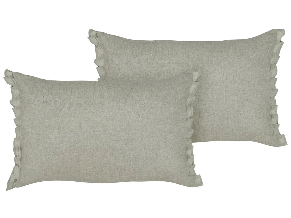 Set of 2 Decorative Cushions Light Grey Linen 30 x 45 cm with Frilling and Bows Beliani is backordered and will ship as soon as it is back in stock.