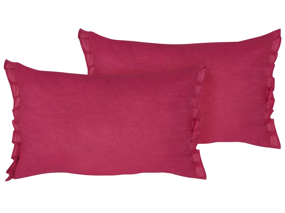 Set of 2 Decorative Cushions Red Linen 30 x 45 cm with Frilling and Bows Beliani is backordered and will ship as soon as it is back in stock.
