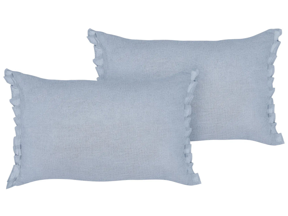 Set of 2 Decorative Cushions Light Blue Linen 30 x 45 cm with Frilling and Bows Beliani is backordered and will ship as soon as it is back in stock.