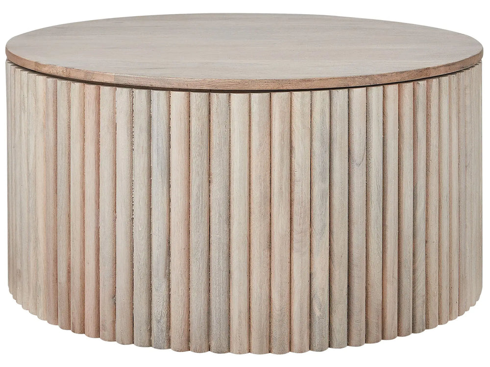 Coffee Table Light Mango Wood 70 cm with Storage Classic Modern Design Living Room Beliani