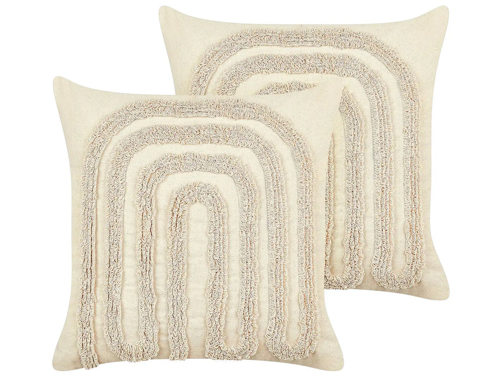 Set of 2 Decorative Tufted Cushions Beige Cotton 45 x 45 cm with Abstract Pattern Beliani is backordered and will ship as soon as it is back in stock.