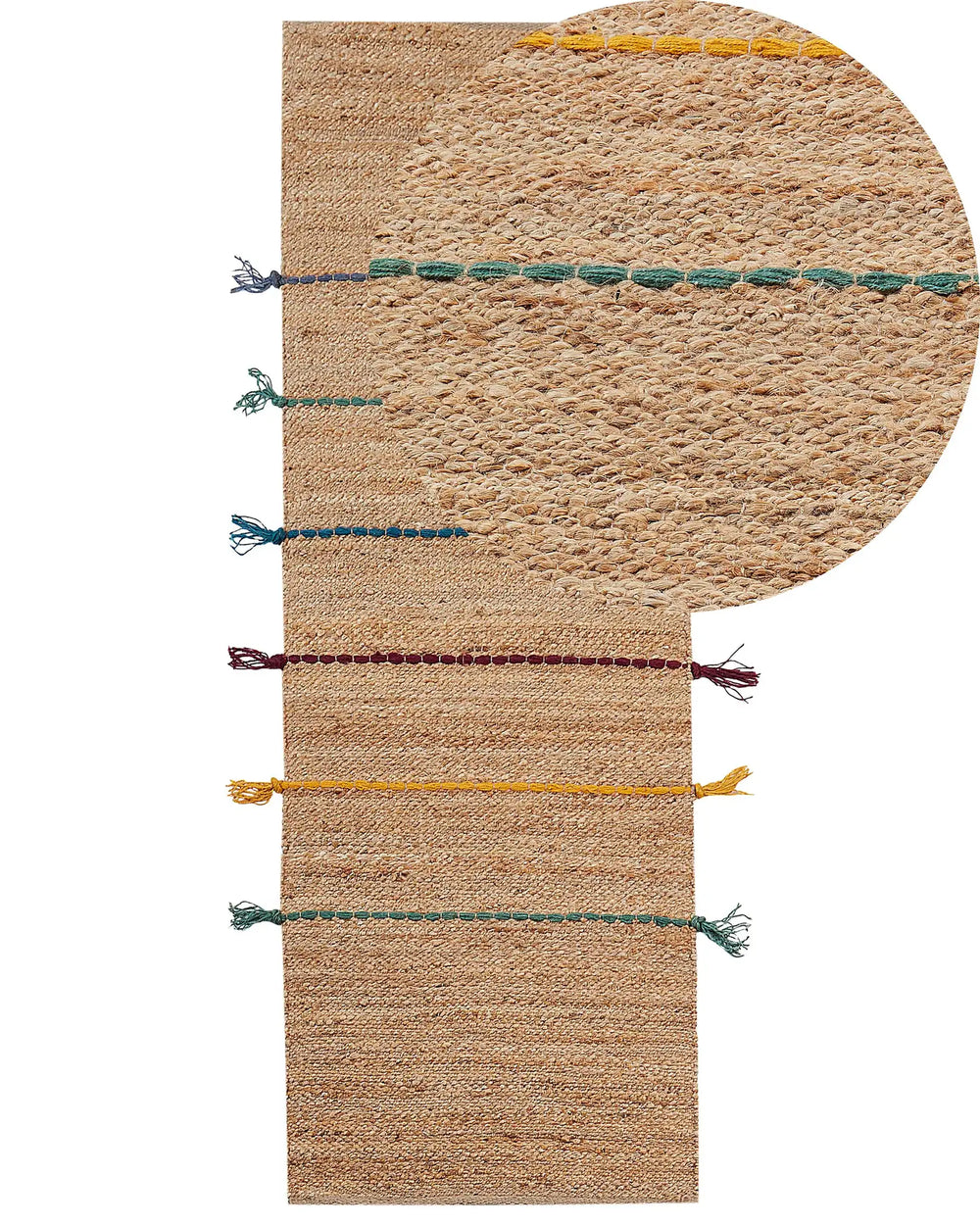 Runner Rug Beige Jute 70 x 200 cm Colourful Threads Hand Woven Boho for Kids Room Hallway Bedroom Beliani