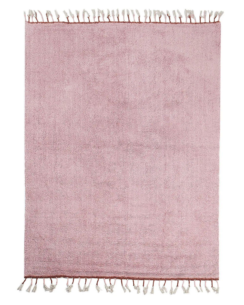 Area Rug Pink Cotton 140 x 200 cm Rectangular with Tassels Solid Pattern Hand Tufted Modern Boho for Kids Beliani is backordered and will ship as soon as it is back in stock.