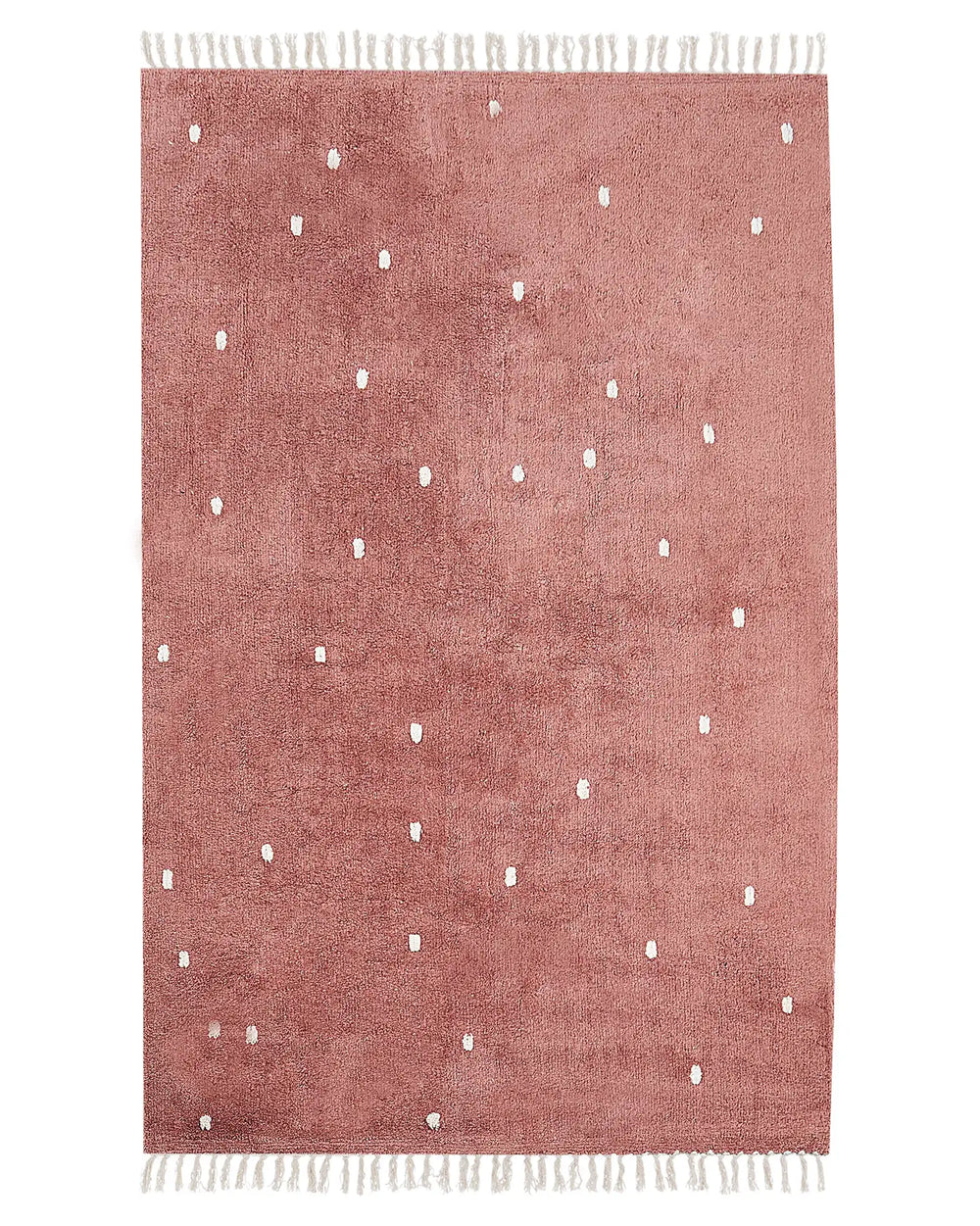 Cotton Kids Rug Light Red Color 140x200 cm with White Dots Rectangular Beliani