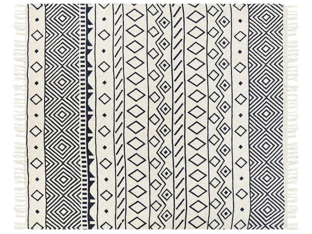 Blanket Beige and Navy Blue Cotton Geometric Pattern 200 x 220 cm Bed Throw Traditional Living Room Bedroom Beliani is backordered and will ship as soon as it is back in stock.