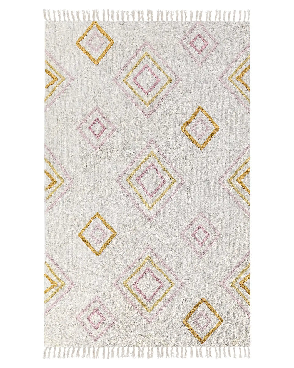 Cotton Tufted Rug Off-white Color 140x200 cm with Multicolor Geometric Pattern Rectangular Beliani