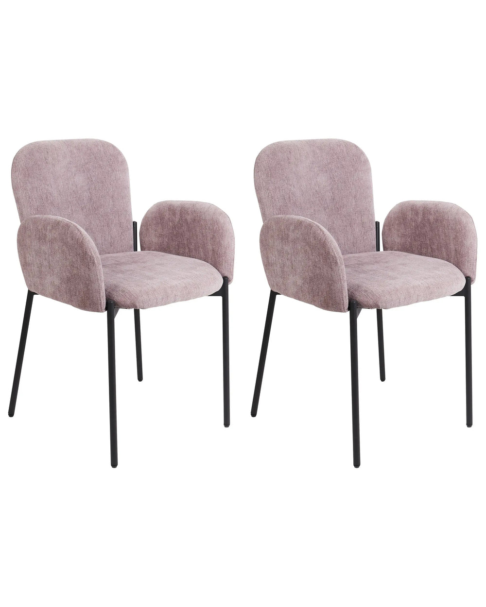 Set of 2 Dining Chairs Pink Fabric Upholstered Woven Polyester Black Legs Retro Style Living Space Furniture Beliani is backordered and will ship as soon as it is back in stock.