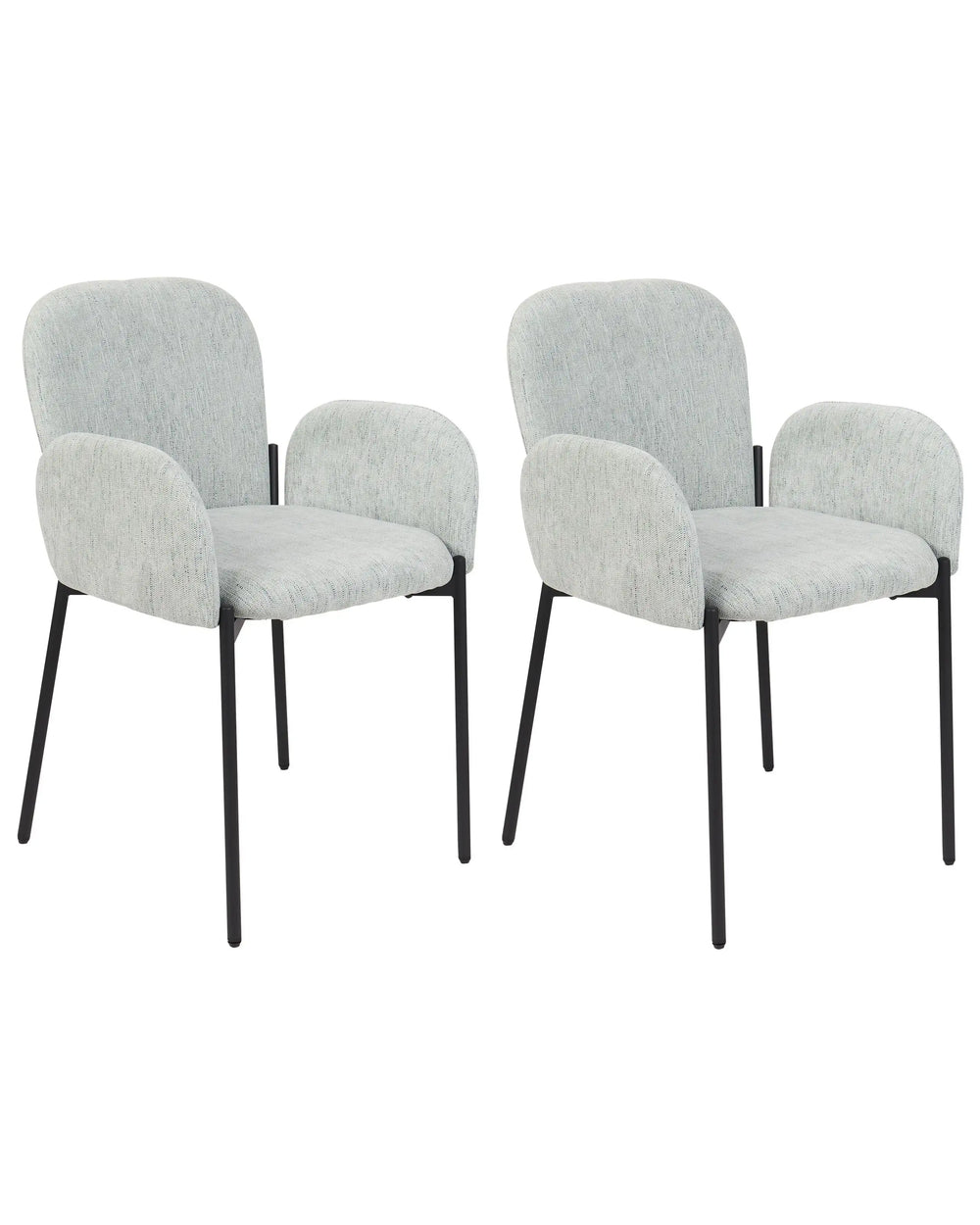 Set of 2 Dining Chairs Mint Green Fabric Upholstered Woven Polyester Black Legs Retro Style Living Space Furniture Beliani