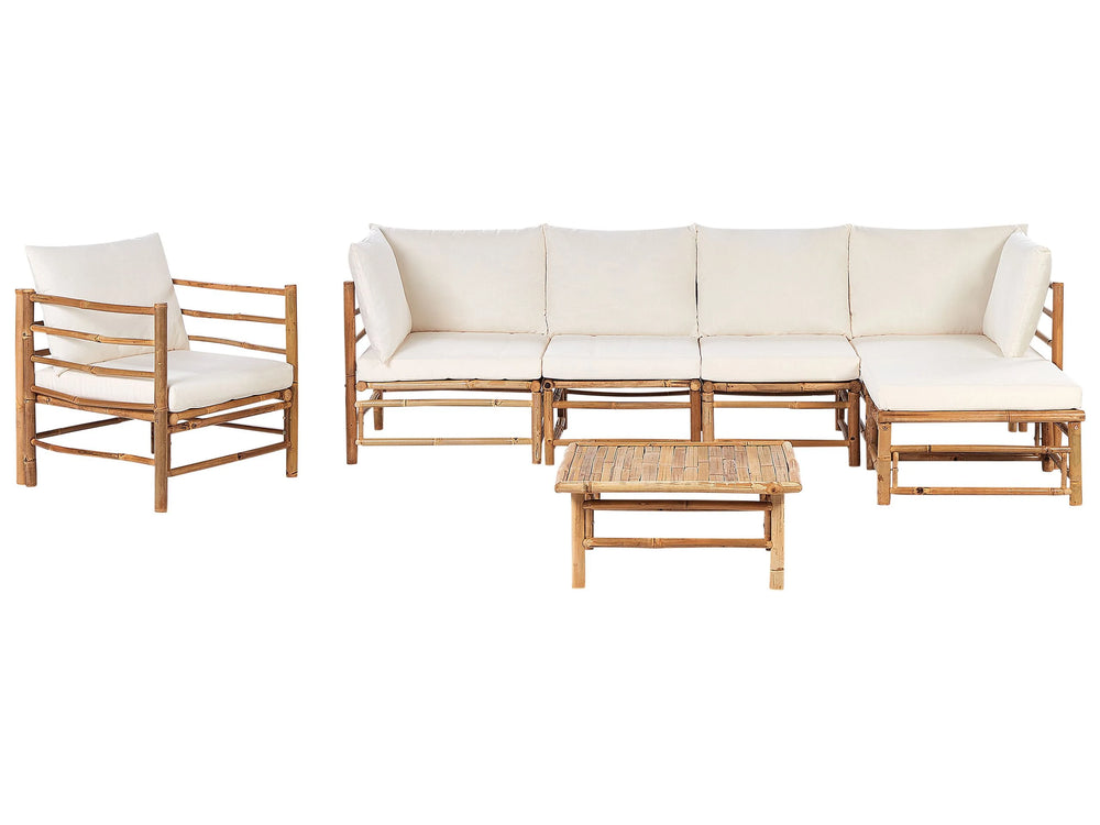 Garden Modular Corner Sofa Set Off-White Bamboo Cushions 5 Seater with Armchair and Coffee Table Boho Design Outdoor Conversation Set Beliani is backordered and will ship as soon as it is back in stock.
