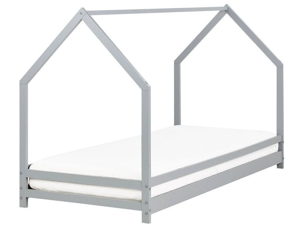 Kids House Bed Grey Pine Wood EU Single Size 3ft with Slatted Base Bed for Toddler Modern Nursery Beliani