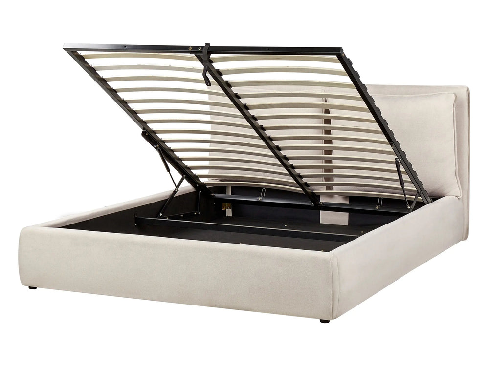 EU King Size Ottoman Bed Light Beige Fabric 5ft3 Upholstered Frame Cushion Back Storage Cosy Bedroom Modern Beliani