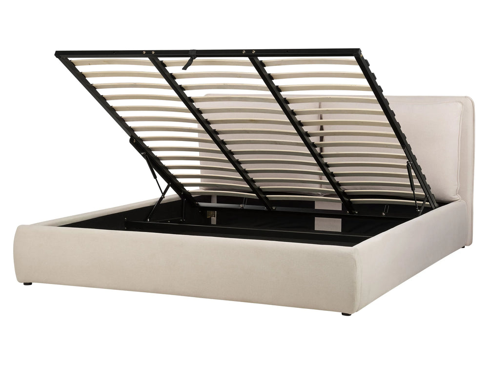 EU Super King Size Ottoman Bed Light Beige Fabric 6ft Upholstered Frame Cushion Back Storage Cosy Bedroom Modern Beliani
