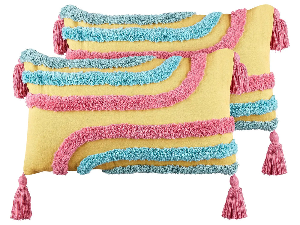 Set of 2 Decorative Cushions Multicolour Cotton 30 x 50 cm with Tassels Rectangular Modern Pillow Boho Decor Accessories Beliani is backordered and will ship as soon as it is back in stock.