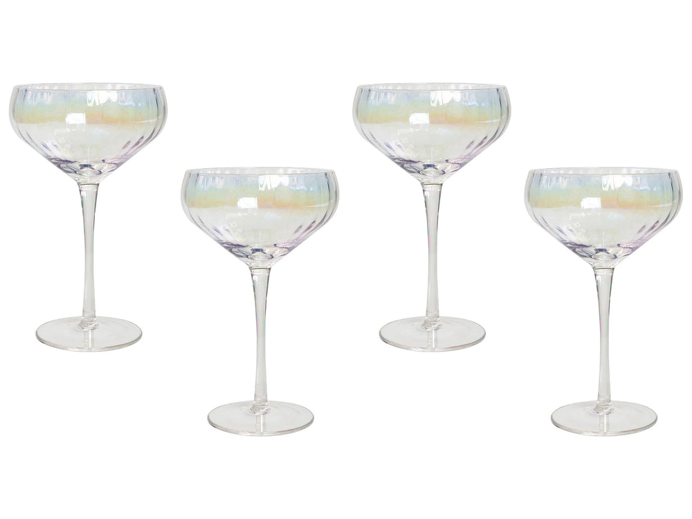 Set of 4 Champagne Saucers Glasses Transparent Iridescent Finish Hand-Blown Coupes Glass 30 cl 11 oz 4 Pcs Set Beliani is backordered and will ship as soon as it is back in stock.