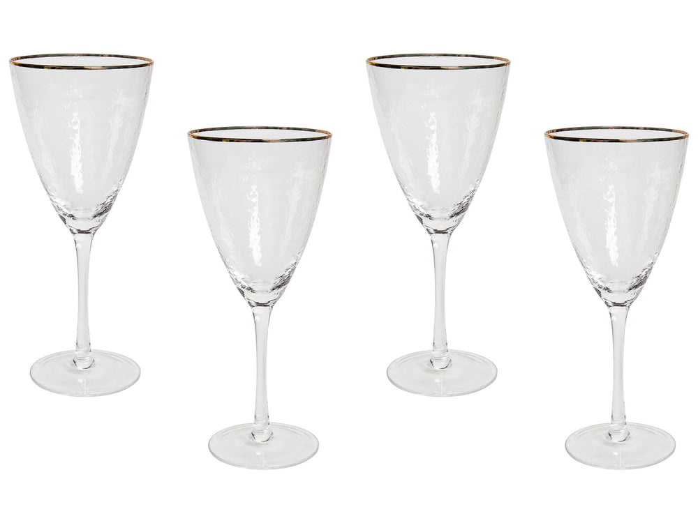 Set of 4 Wine Glasses Transparent Hand-Blown 38 cl 13 oz 4 Pcs Set Gold-Rimmed Glass Beliani