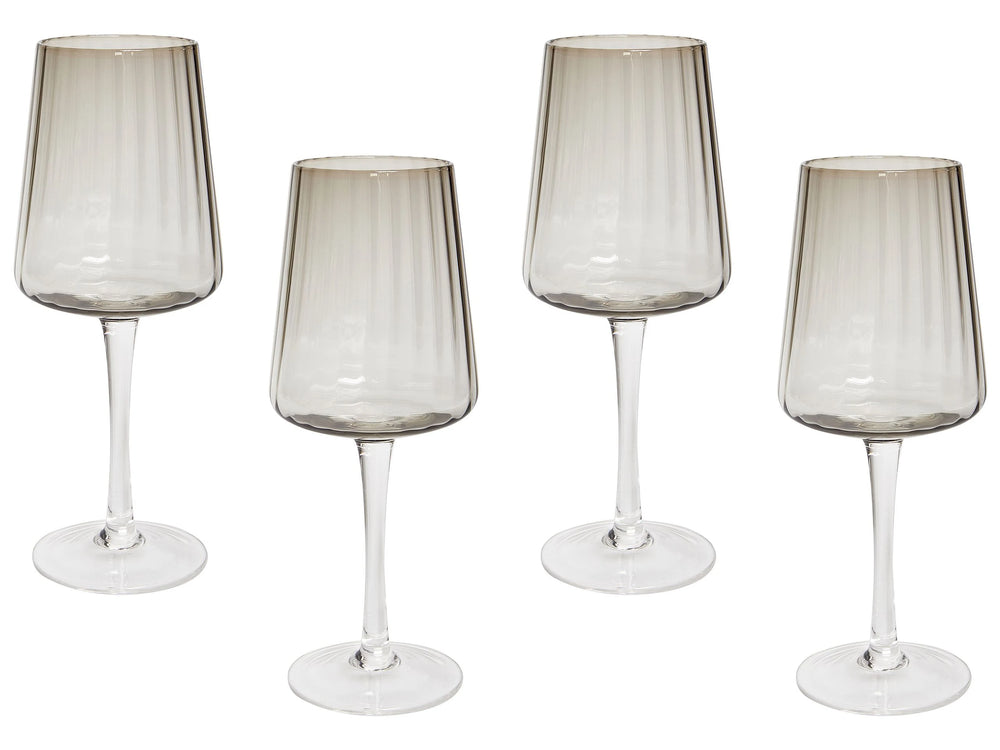 Set of 4 Wine Glasses Grey Finish Hand-Blown Glass 36 cl 13 oz 4 Pcs Set Beliani is backordered and will ship as soon as it is back in stock.