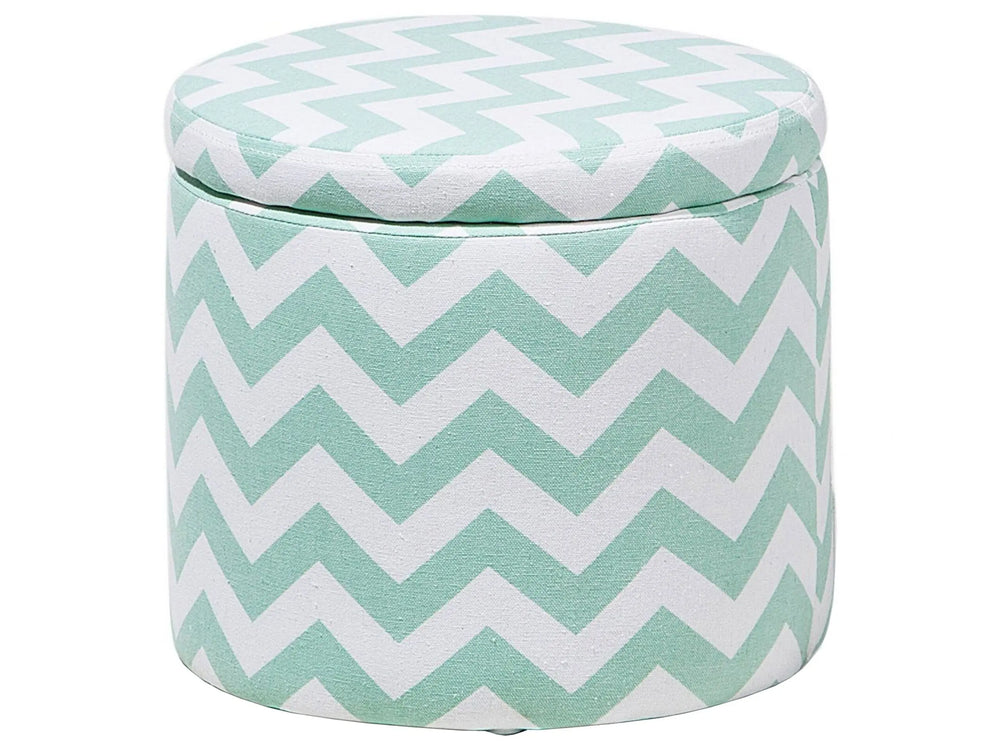 Footstool Green and White Round Storage Stool Chevron Pattern Beliani