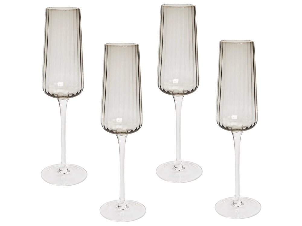 Set of 4 Champagne Flutes Grey Transparent Hand-Blown 23 cl 8 oz 4 Pcs Set Coupes Glass Beliani