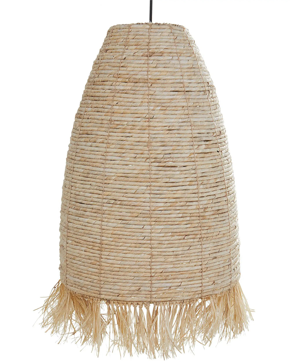 Pendant Lamp Natural Corn Husk Shade Black Iron Base Boho Lightning Hanging Light Living Room Bedroom Hallway Beliani