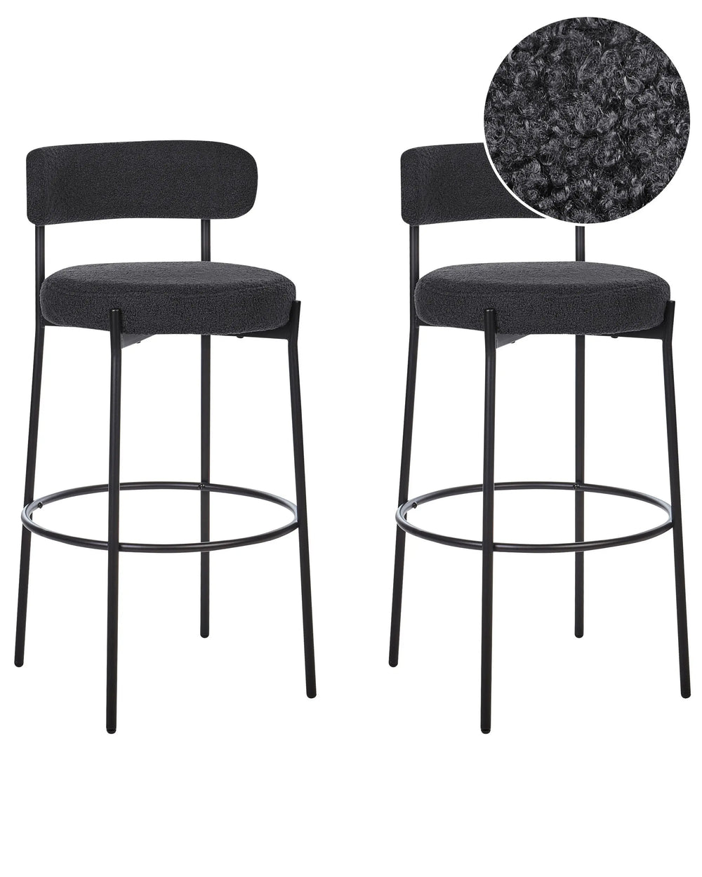 Set of 2 Bar Stools Black Armless Leg Caps Boucle Black Steel Legs Modern Design Dining Room Seating Beliani is backordered and will ship as soon as it is back in stock.