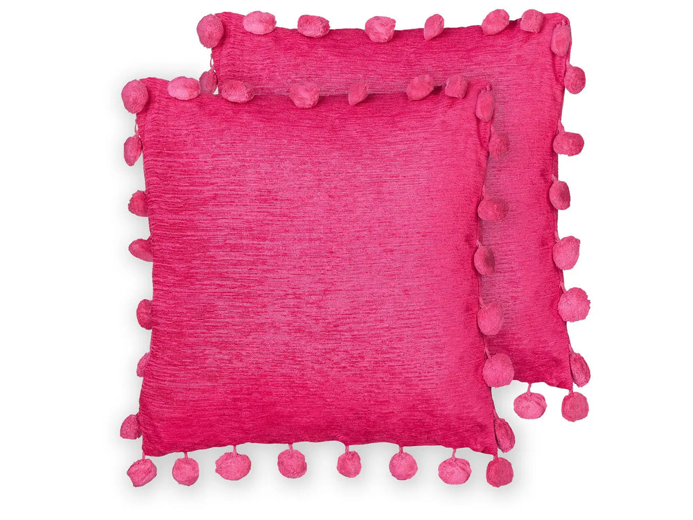 Set of 2 Scatter Cushions Fuchsia Polyester Fabric Solid Pattern Handmade Tassels Pompoms 45 x 45 cm Home Decor Accessories Beliani